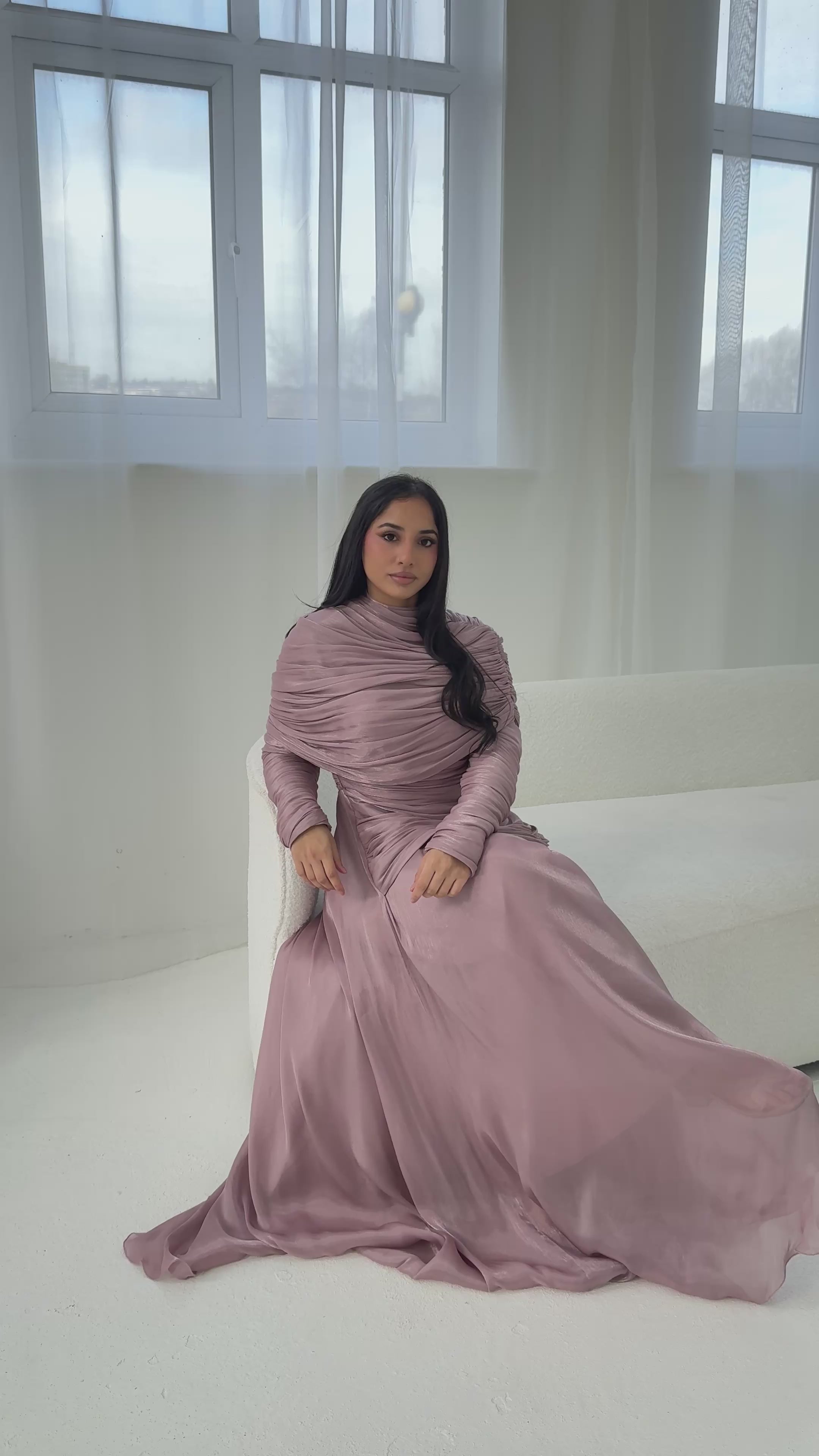 The Layaan Dress is designed with soft ruching across the bodice and sleeves, creating a beautifully textured and distinctive look while still feeling elegant and refined.
